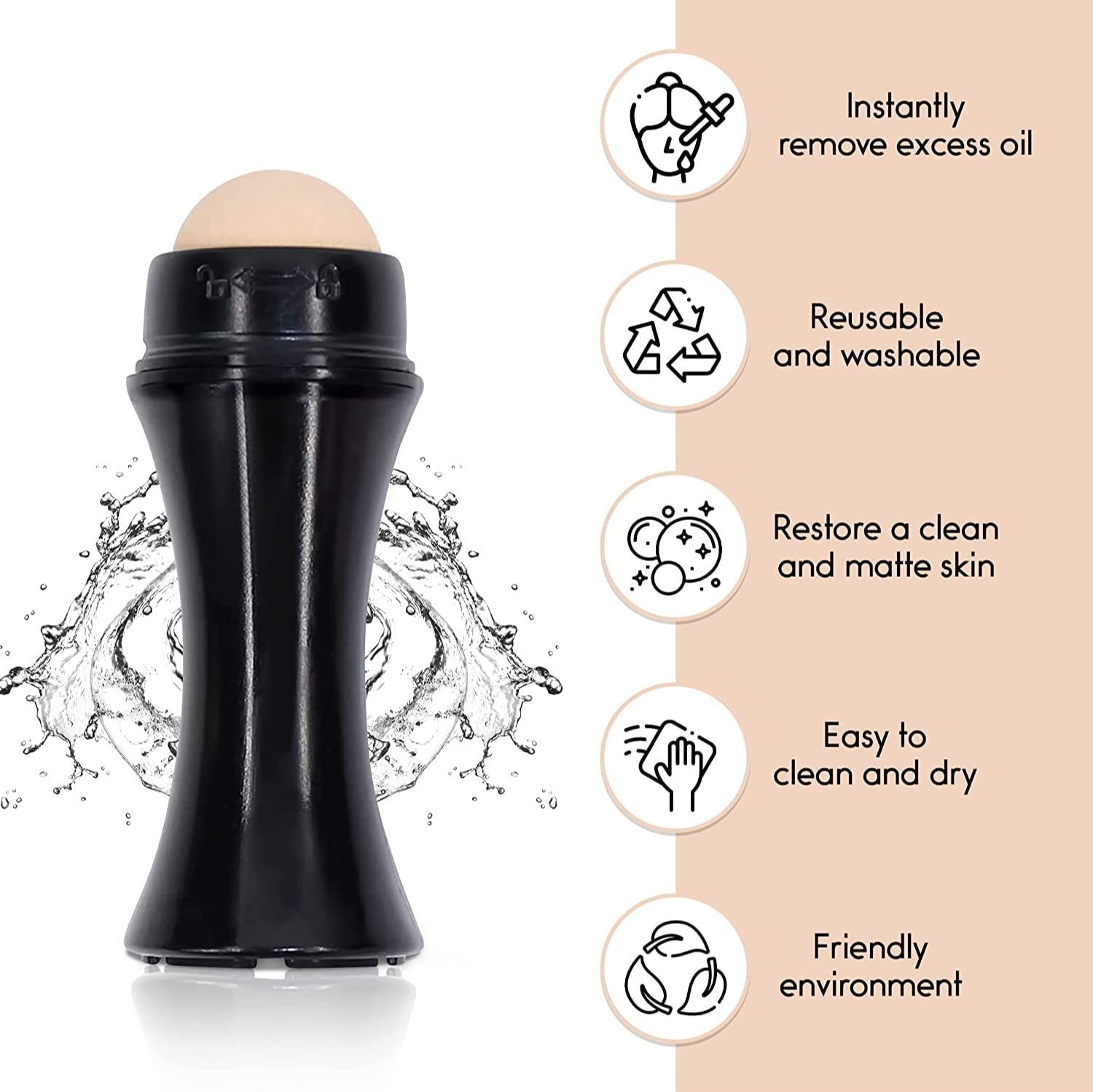 The volcanic roller effectively absorbs excess oil from your skin in seconds, leaving it fresh and matte without any residue.